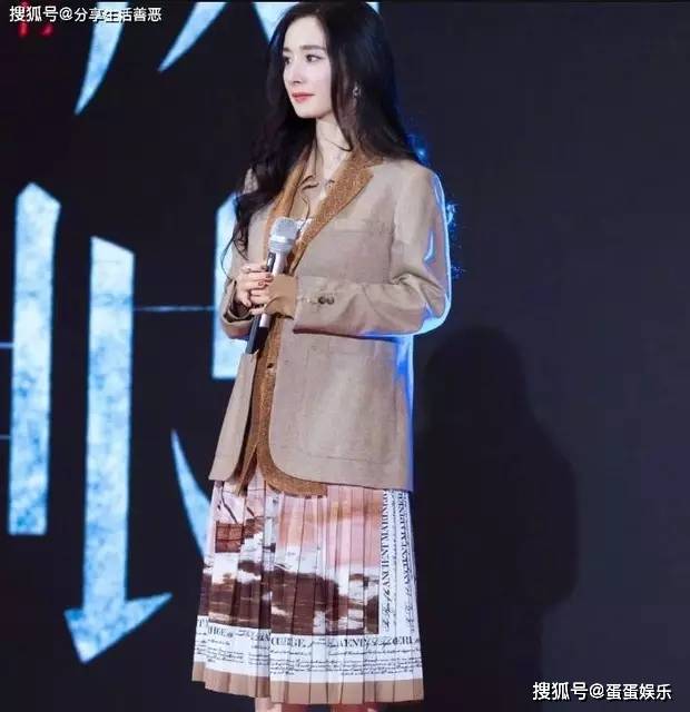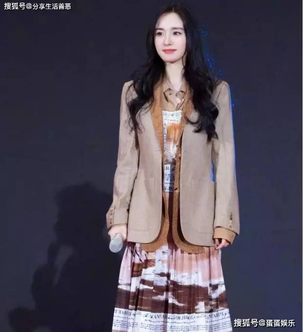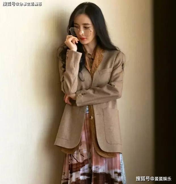 杨幂碎花百褶长裙配咖啡西服:文艺美学炸裂时尚圈