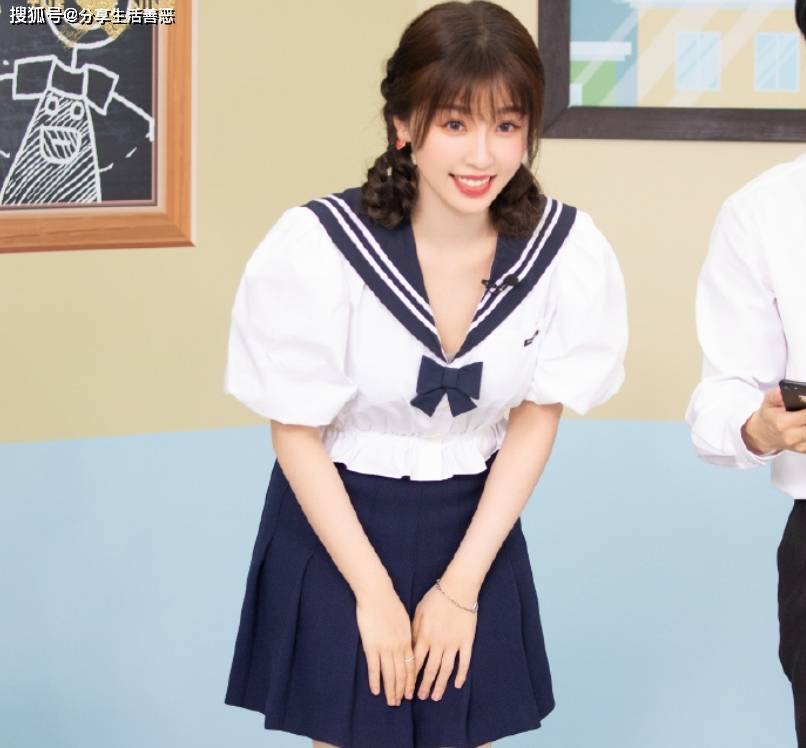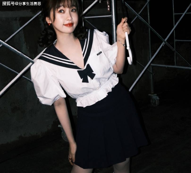 百褶元素可是 JK 短裙的灵魂所在,这在虞书欣的造型里也不例外。百褶就像是有魔法一样,不仅能起到窄胯显瘦的效果,还让整个造型瞬间灵动起来。随着虞书欣的一举一动,裙摆的百褶轻轻晃动,仿佛自带 “灵动特效”,进一步展现出了她那满满的少女魅力,活脱脱一个活泼可爱的邻家小妹。